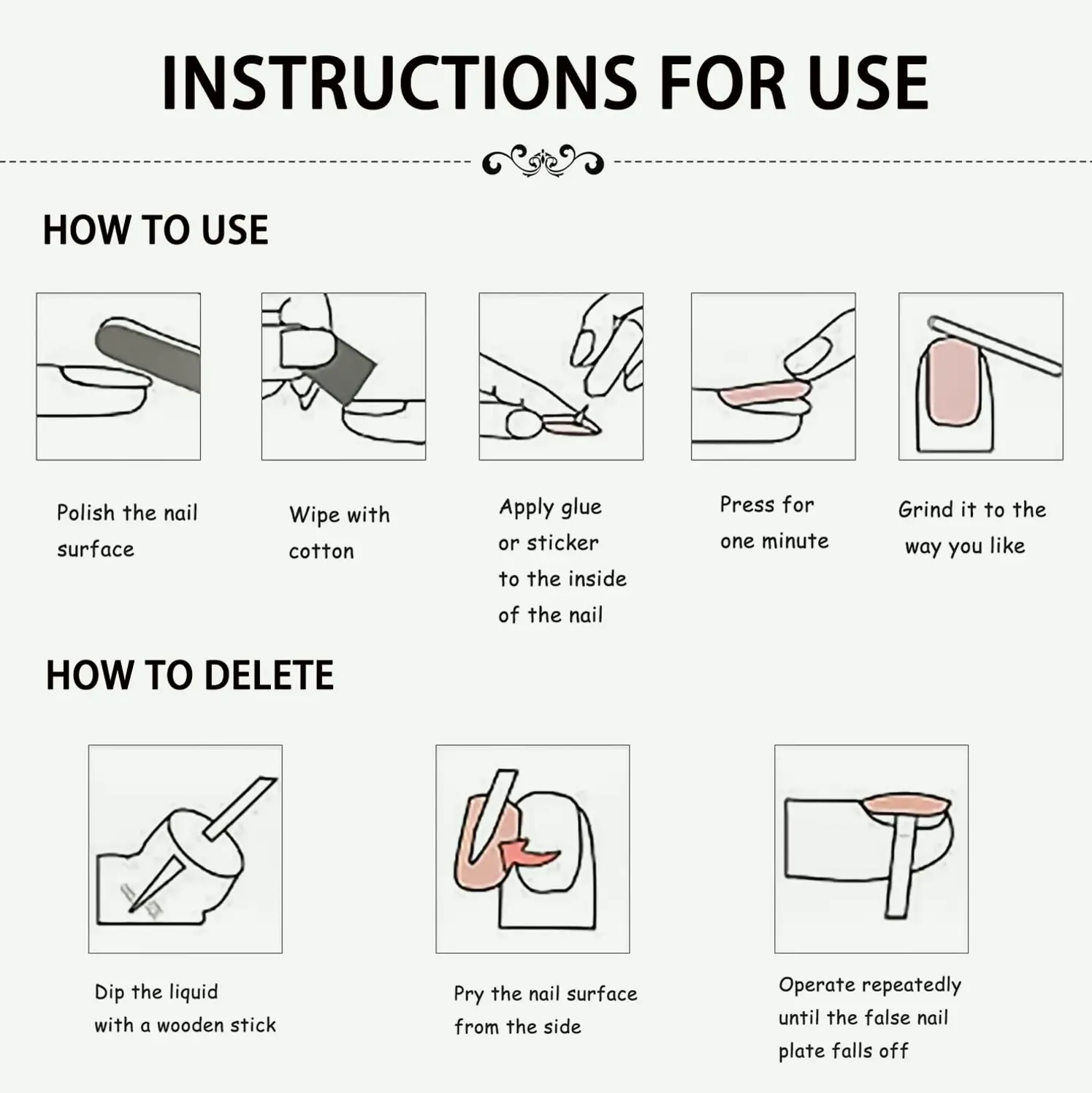Our fake nails are made of acrylic environmentally safe components, which do not harm your fingers and are durable, providing a pleasant use experience. This uniquely designed collection is the perfect gift for friends, partners, and family. The package includes 24 fingernails in 12 different sizes to satisfy your wearing needs. For beautifully designed false nails, select the appropriate nail piece, polish the nail bed, apply the jelly provided, and press for 30 seconds to achieve a lovely nail enhancement. For all inquiries about our items, please contact us at once; we are at your service. (Note: Nail glue is not provided)