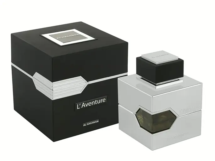 Adventure from Al Haramain Perfumes is a Cyprus Fruit scent for men. Top notes feature Citrus, Bergamote and Elemi. Heart scents have Woody Notes, Jasmine, and Lily-of-the-Valley. Its base notes blend Musky, Patchouli, and Ambergris.