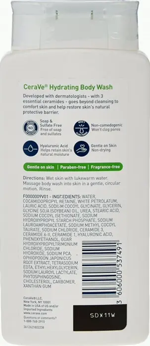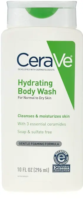 Renew & Hydrate with a gentle foaming formula that scrubs without depleting your skin of its natural moisture. Skin is moisturized & smooth. Moisturizing Body Wash with Hyaluronic Acid, retains skin natural hydration. Use with light massage motions using a loofah. Can be used with our Moisturizing Cream to lock in hydration. Contains 3 Essential Ceramides to help restoring the skin barrier. Developed with dermatologists. Sulfate-free. Accepted by Eczema Association.