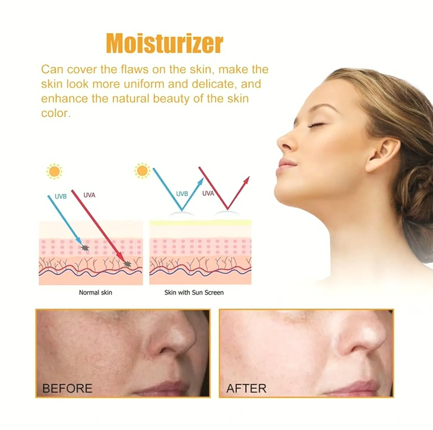 Elevate your beauty regimen with this multi-functional sunblock. It shields against UV rays with strong SPF PA++++, moisturizes, soothes, and gives a glow without stripping hydration. Everyday application shields from UV and UVB rays, preventing indications of aging and repairing damaged skin. Experience the smooth, effortless texture with no oily finish. Water-resistant for up to 50 minutes, perfect for outdoor activities. Apply 30 minutes prior to going out for optimal protection.