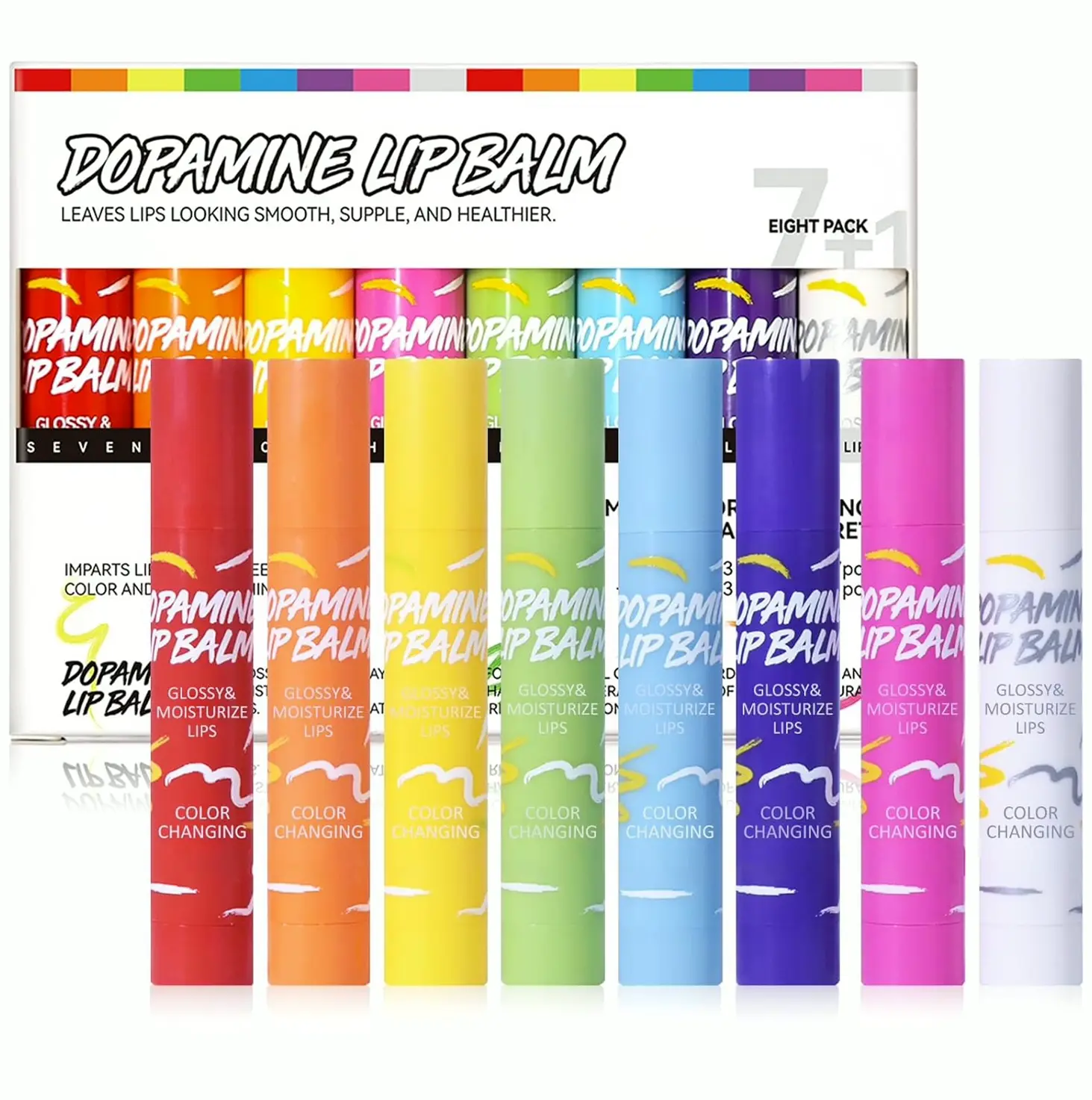 Deep Moisturizing: This lip moisturizer bulk is formulated with a organic, highly moisturising formula that calms and lightens lip wrinkles, locking in moisture. Keeps the softness and moisture of your lips, creating plump, moisturized lips. Color Changing Lip Balm Collection: A variety of colors for a different lip cosmetic look. Changes to a deep or pale pink lipstick or to a natural tone based on your lip color. This transforming lip balm will keep you radiant and hydrated all day long. Fruity Scented Lip Treatment: The colored balms come with different fruity aromas including: berry, orange, lemon, citrus, tropical, grapevine, and one is odourless. The unique packaging of the product corresponds to the color of the moisturizer to give a pleasing lip makeup. Glossy Look: The lip balms gently blend as put on the lips, giving a smooth finish. The colored moisturizer thoroughly covers the lips, creating a subtle lip look. You can additionally layer it over your current lip cosmetic for a glossier finish. Lip Balm Kit: The compact moisturizer is suitable for all complexions and can be carried around to keep lips shielded from dryness with continuous moisture. Elegantly crafted gift set is ideal for birthdays, Thanksgiving, Valentine’s Day, or anniversaries as a gift for family, loved ones, and friends.