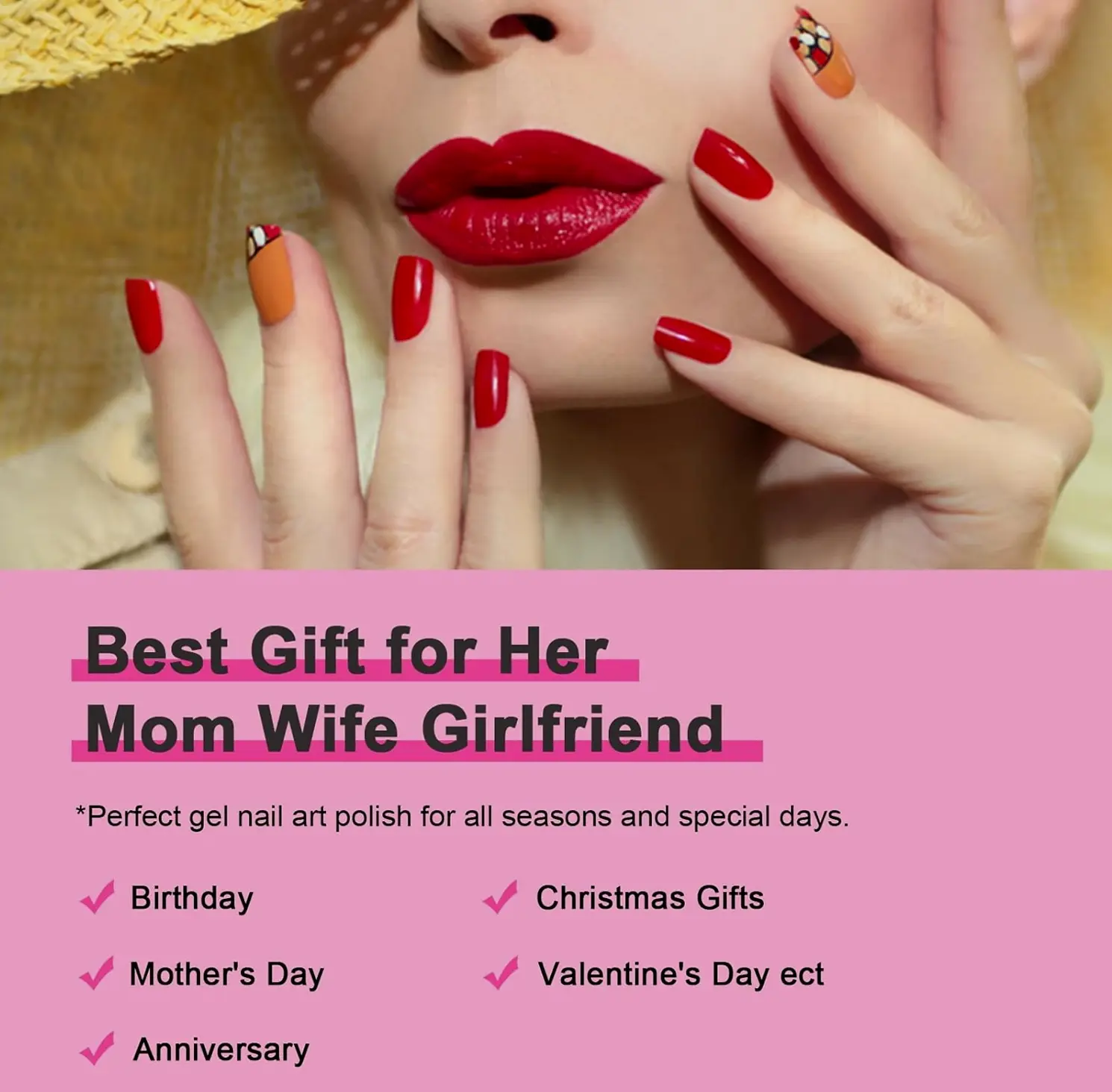 Own this Nail Art Gel Paint Set in 12 Vibrant Colors: Perfect for designing holiday gel polish designs.uD83EuDDE1nEach bottle features a built-in slim brush for easy application and manicures. Multifunctional gel paint acts as either painting gel and regular polish.uD83DuDC99nHealthy and unscented, made from 9 non-toxic ingredients. Demands UV/LED lamp to harden, enduring up to 21 days.uD83DuDC9AnGreat gift for her on holidays like Mother’s Day.uD83DuDC9CuD83DuDC9B
