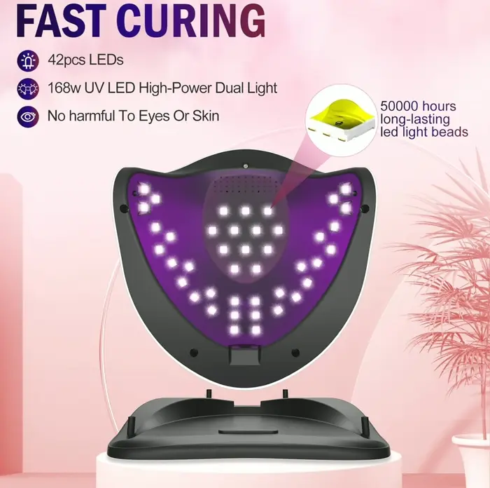 Experience the advantages of high-speed gel nail curing with our LED nail dryer. Equipped with 42 durable LED beads, it cures gel polish uniformly, saving you up to 70% of your time. The spacious design with easy-to-carry handle enhance it perfect for personal and professional use. The detachable tray ensures convenience and hygiene. Featuring a unique 99s LOW HEAT MODE, it slowly increases power to keep your sensitive skin comfortable while curing gels. Its infrared sensor and various timing settings (10 seconds, 30 seconds, 60 seconds, and 99 seconds) provide flexibility and user-friendliness. This nail lamp is compatible with all UV/LED gel nail polish, making it a versatile device for different nail treatments. If you encounter any issues, we offer a 100% satisfaction guarantee within 12 months. Contact us for support.