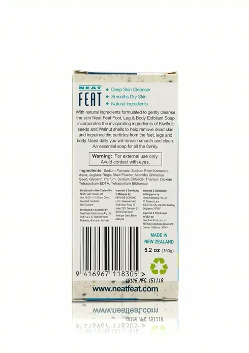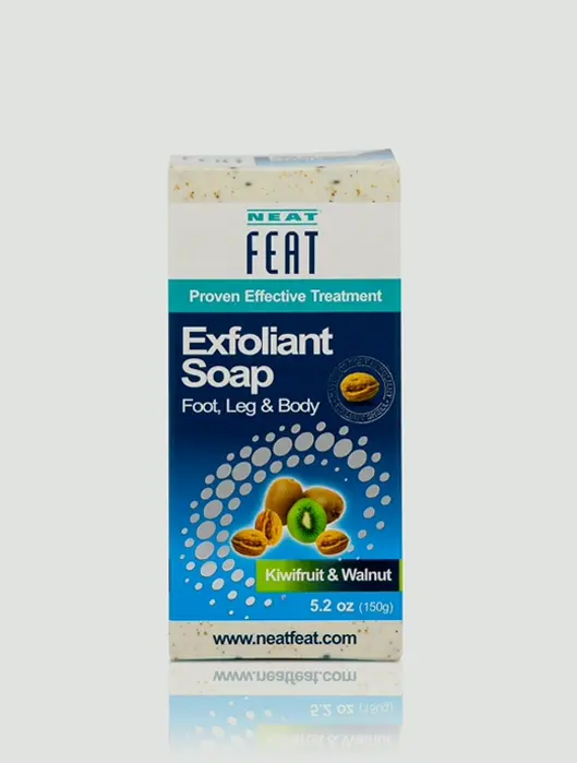 Exfoliating soap removes ingrained grime and dry skin. Maintains skin smooth and fresh when used regular use. Provides immediate comfort to tired soles. Get soft, fresh soles, with our unique new exfoliating pedicure soap. Contains pure kiwi extract and crushed walnut.