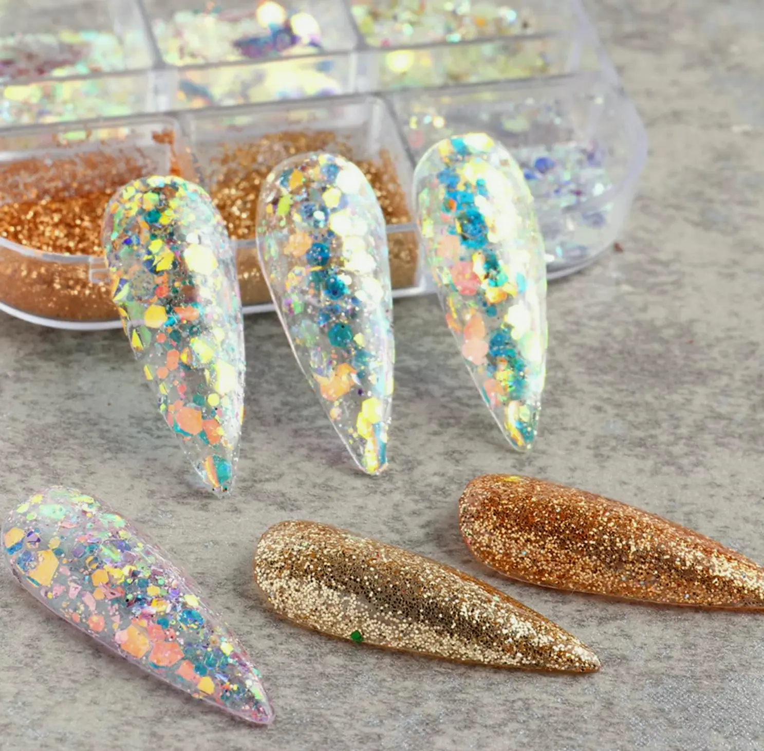 Quantity: You will get 6 grids/box with glitter design powder, providing a variety of shapes and colors to choose for decorating your nails. Mixed Design: Comes with mixed sequins and mini circle flakes, making you to create nail designs in different colors. Holographic 3D glitter decorations will make your nails more charming. Easy to Use: Perfect for professionals and beginners. Polygon-shaped nail glitter sequins work well for natural and artificial nails, can be combined with UV gel polish, DIP powder, and all nail powders. Safe: Holographic 3D mermaid resin glitter is safe, non-toxic, eco-friendly, and harmless to your nails. It enhances nail decorations to boost shine and achieve professional nail art effects. Versatile: These fashionable ultra-thin glitter nail decorations are very suitable for 3D nail art, glitter nail design, crafts, holiday decorations, face art, body, nails, cell phone cases, invitation, and more. Perfect for professional nail salons and home use. A great gift idea for nail lovers.