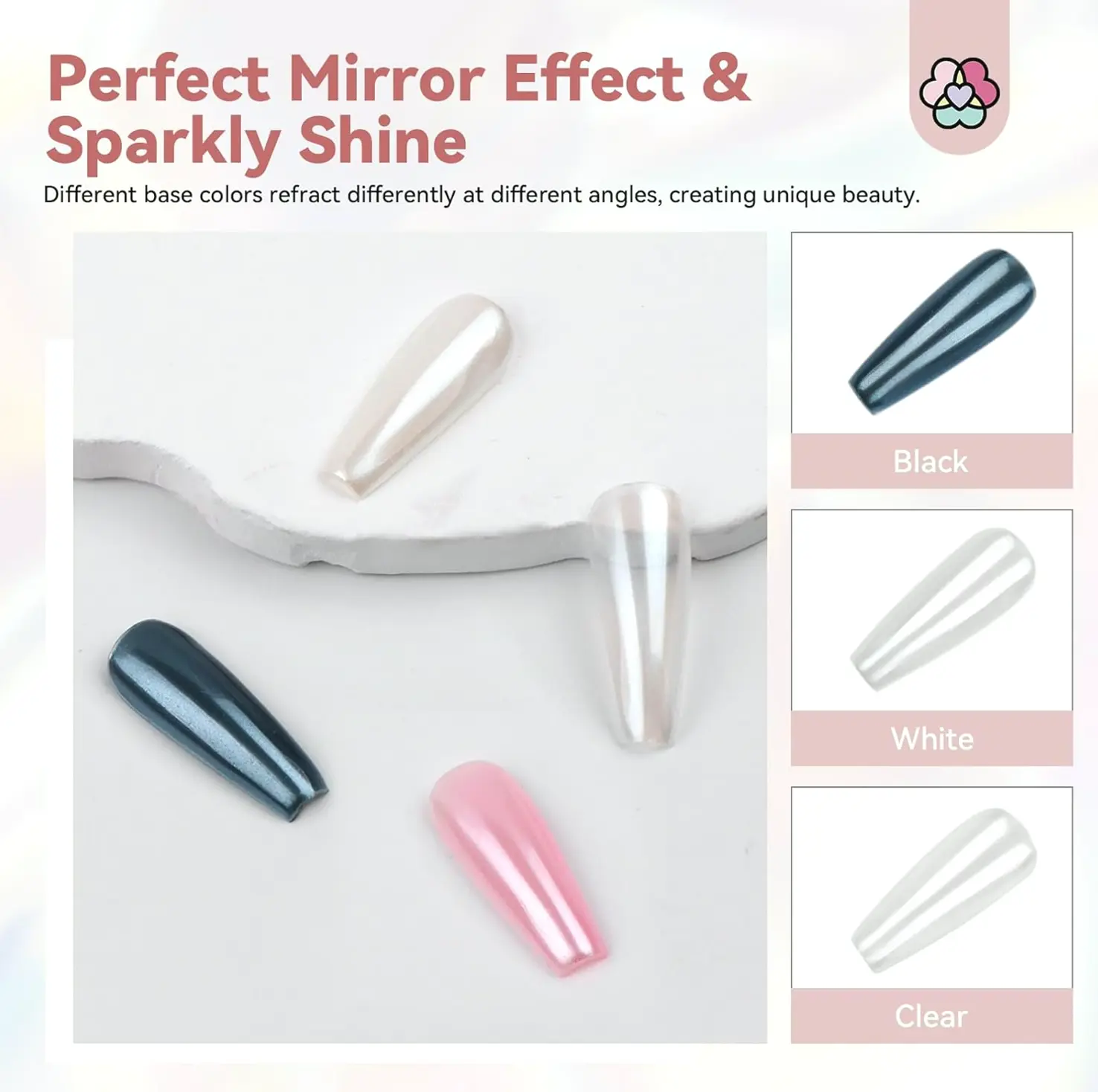 Package includes 1 jar of pearl chrome dust and a sponge applicator. The closed jar stops spills and wastage of the mermaid pigment. Perfect for personal or salon use. Ideal for gel nails, acrylic extensions, and natural nails. Create effects like bubbles, mirror, water ripples, color gradients, or shell-like nails. Easy to use with a closed lid, avoiding spills and ensuring easy access. Achieve glossy results by following guidelines and using a No-Wipe top coat. Long-lasting, high-pigment chrome powder provides stunning effects with various base colors. Up to 28 days of captivating colors. Customer satisfaction is our priority. Contact us for any assistance or issues.